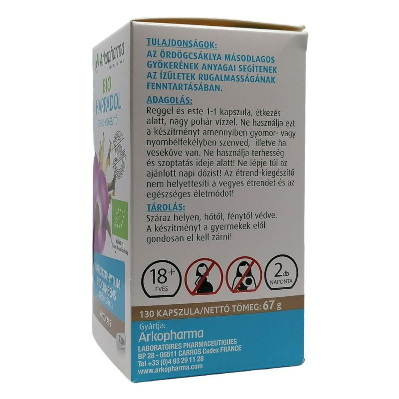 Sportolók szintén gyakran, sikerrel használják az intenzív edzésből adódó ín- és izomfájdalmak enyhítésére. Mivel a harpagosid segít a húgysav kiválasztásában, ezért köszvényes tünetek enyhítésére is alkalmazható. A fent leírt hatásokat több klinikai kutatás bizonyította. Ajánlható: rheuma, artritis, kiegészítő gyógyszerelésként a rheumatoid, arthritis kezelésében, köszvény. Adagolás: 2x1 kapszula étkezés közben. Akut fájdalom esetén az adag napi 4 kapszuláig növelhető. Mellékhatások: nincs ismert mellékhatása. Felhasznált részek: a másodlagos gyökerek 450mg fagyasztva őrült teljes növény por. Regisztrációs szám: 9714/2011 OÉTI.