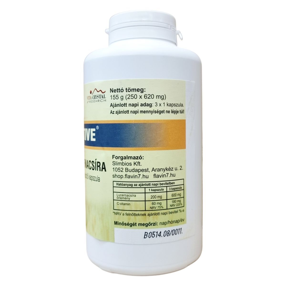 A termék lucernacsíra őrleményt és C-vitamint tartalmaz kapszula formájában, kiszerelése 250 darab, összesen 155 gramm. A C-vitamin hozzájárulhat az immunrendszer normál működéséhez, míg a lucernacsíra őrlemény az étrend kiegészítéseként szolgál. Az ajánlott napi adag három kapszula, amelyben 600 mg lucernacsíra őrlemény és 180 mg C-vitamin található meg. Az összetevők között szerepel továbbá cirok mag-héj őrlemény és a kapszula alkotórészei, mint a hipromellóz és cink-oxid. A termék fogyasztása nem helyettesíti a változatos, kiegyensúlyozott étrendet és az egészséges életmódot. Kisgyermekektől elzárva kell tartani, valamint a kapszulát száraz és hűvös helyen kell tárolni.