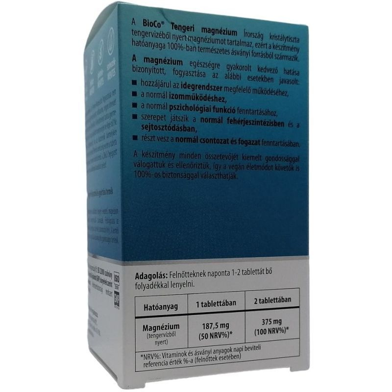 A BioCo Tengeri magnézium Írország kristálytiszta tengervizéből nyert magnéziumot tartalmaz, ezért a készítmény hatóanyaga 100%-ban természetes ásványi forrásból származik. A készítmény minden összetevőjét kiemelt gondossággal válogattuk és ellenőriztük, így a vegán életmódot követők is 100%-os biztonsággal választhatják.