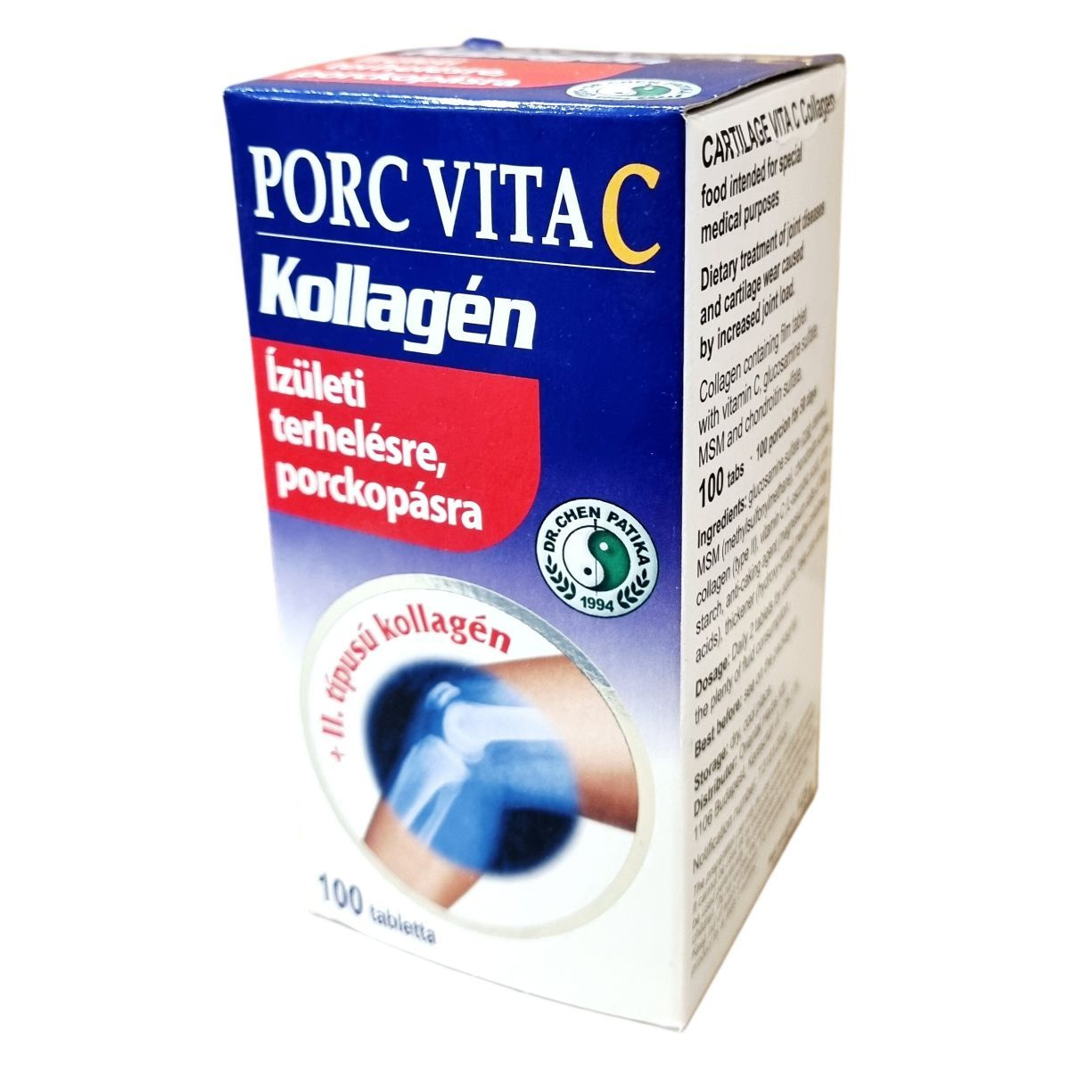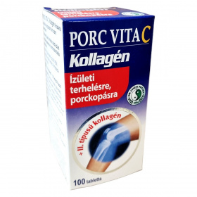 A Porc Vita C kollagén filmtabletta speciális gyógyászati célra szánt élelmiszer, amelyet ízületi megbetegedések és porckopás diétás ellátására fejlesztettek ki. A készítmény kollagént (II. típusú), glükózamin-szulfátot, metil-szulfonil-metánt (MSM), kondroitin-szulfátot és C-vitamint tartalmaz. A termék 100 db filmtablettát tartalmaz, ami 100 adagnak felel meg, 50 napos használatra. Az aktív összetevők támogatására szolgálhatnak a fokozott ízületi terhelés esetén kialakuló problémák kezelésében. A termék a helyes gyártási gyakorlat szerint készül, és minőségi előírásoknak megfelelően ellenőrzött. A készítményt csak orvosi felügyelet mellett szabad alkalmazni, kizárólagos tápanyagforrásként nem használható, és parenterálisan nem alkalmazható. Gyermekek számára nem ajánlott, és az ajánlott napi mennyiséget nem szabad túllépni. A termék legalább három hónapos folyamatos alkalmazása javasolt a legjobb eredmény érdekében.