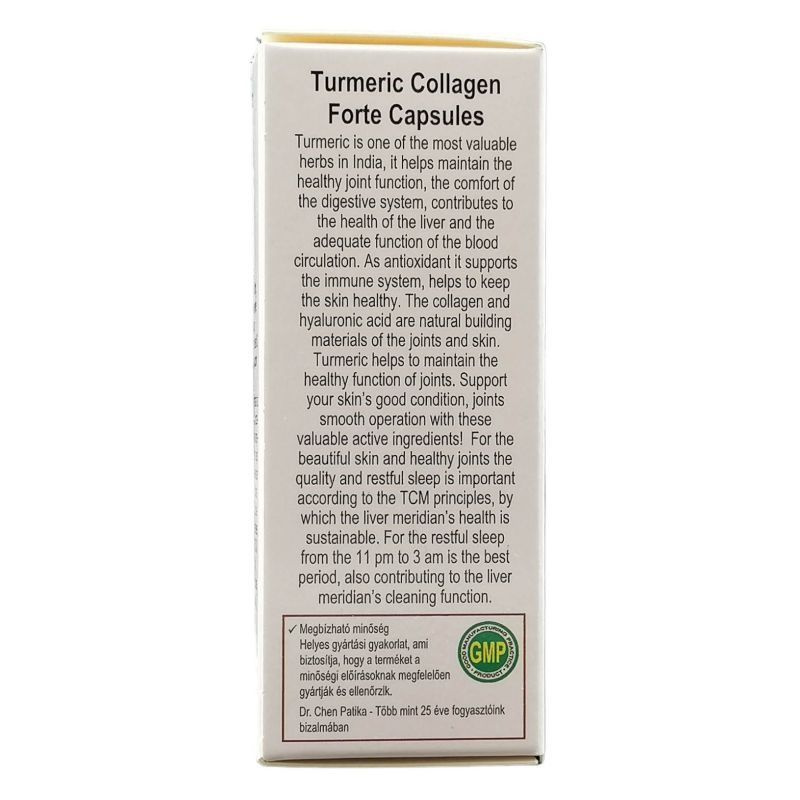 A kurkuma az indiai gasztronómia egyik leghíresebb gyöngyszeme, kedvező élettani hatása miatt népszerűsége egyre nagyobb. A kurkuma segít fenntartani az ízületek mozgathatóságát, egészséges működését. Antioxidánsként támogatja az immunrendszert, valamint a bőr egészségét. A kollagén az ízületekben és a bőrben természetesen is megtalálható rugalmas fehérje, a hyaluronsavval hozzájárulnak a bőr rugalmasságának megőrzéséhez. Támogassa bőrének jó állapotát, ízületeinek könnyű mozgathatóságát ezekkel az értékes hatóanyagokkal! Naponta: 2 × 1 kapszula szedése javasolt 3 deci vízzel bevéve.