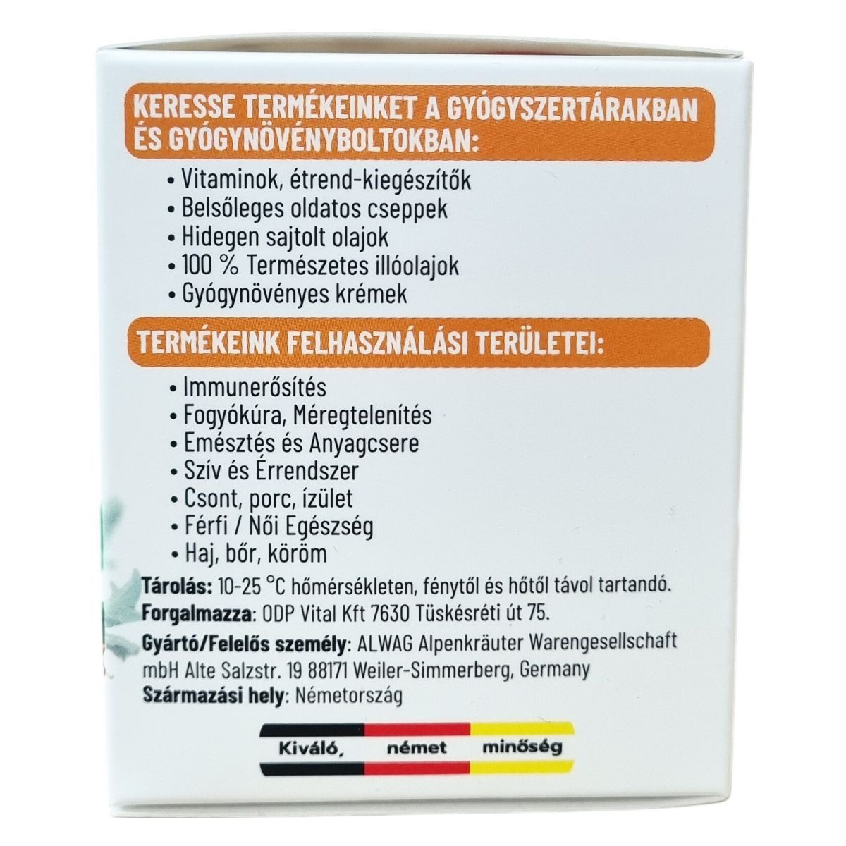 Tárolja 10–25 °C között, fénytől és hőtől védve.