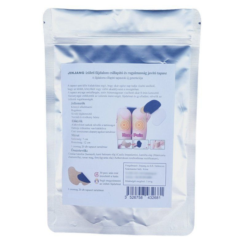 Hatóanyagai csökkenthetik az ízületek merevségét, fájdalmat és gyulladást, növelhetik az ízületek rugalmasságát! A tapasz speciális kialakítása segíthet, hogy akár egész nap tudja viselni anélkül, hogy az térdét, könyökét vagy vállát akadályozná a mozgásban. A tapasz anyaga antiallergén, ezért biztonságosan viselhető akár 8 órán keresztül. Méret: Szélesség: 7cm, Hosszúság: 12cm.