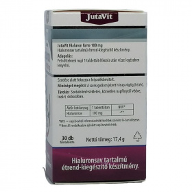 A hialuronsav az emberi szervezetben - többek között a szemben, a bőrszövetben, az izmokban, az ízületekben - természetesen megtalálható nagy molekulájú szénhidrát, mely nagy vízmegkötő képességgel rendelkezik. Kiegészítő bevitele étrend-kiegészítő formájában is biztosítható. A JutaVit hialuron forte tabletta 100mg hialuronsavat tartalmaz, nátrium-hialuronát formájában, ezzel járulva hozzá a szervezetben lévő hialuronsav mennyiségének pótlásához.