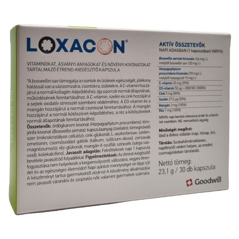 Aktív összetevők a napi adagban (1 kapszulában) (NRV%): Boswellia serrata kivonata: 166 mg -amelyből boswellin sav: 120 mg, Harpagophytum procumbens kivonata: 270 mg -amelyből harapagozid: 15 mg, cink: 5 mg (50%), szelén: 27,5 μg (50%), mangán: 2 mg (100%), réz: 1 mg (100%), C-vitamin: 20 mg (25%), D-vitamin: 50 μg - 2000 NE (1000%).