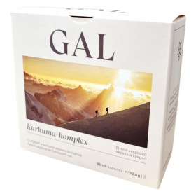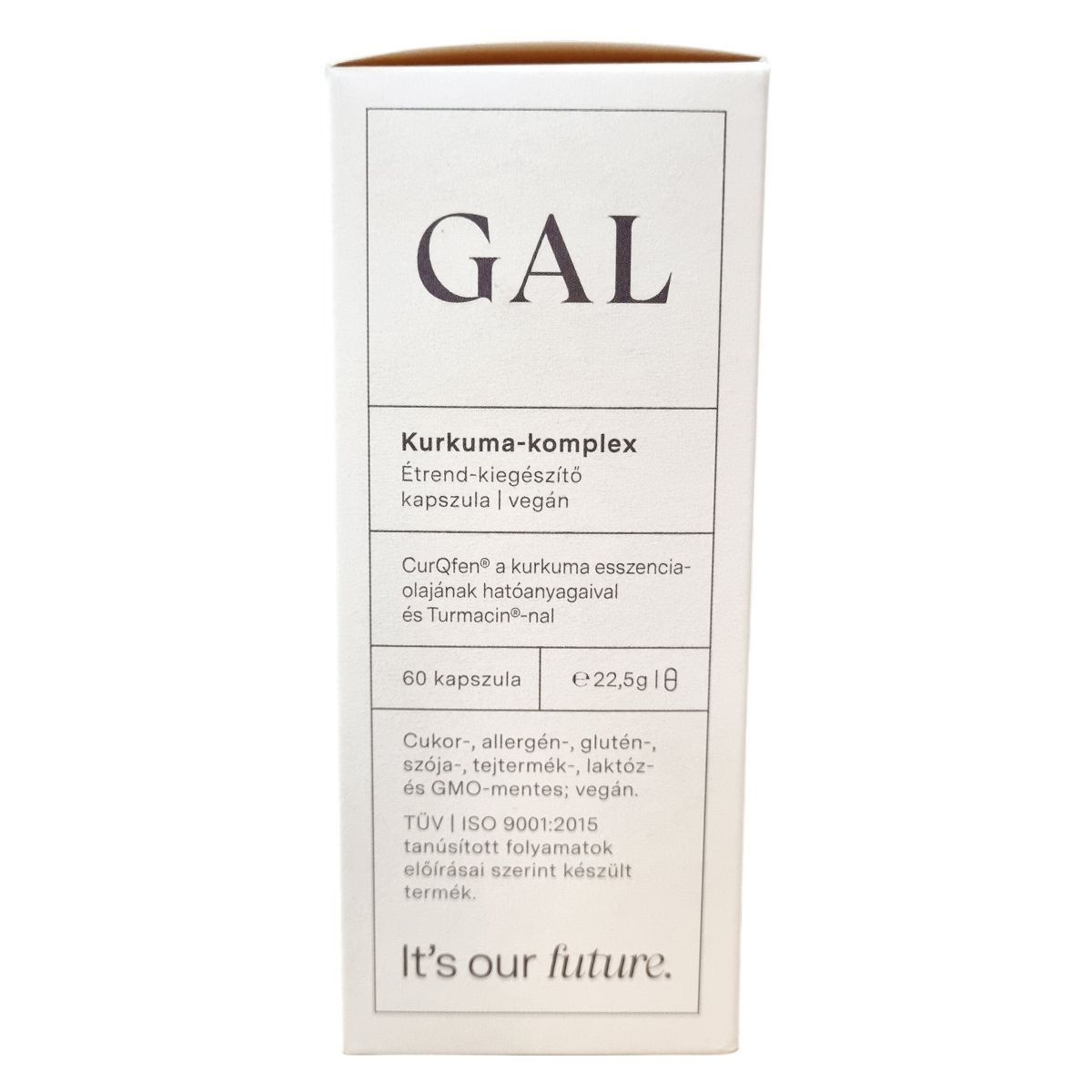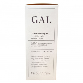 A GAL Kurkuma-komplex egy természetes alapanyagokból készülő, minőségi étrend-kiegészítő, amely a kurkuma esszenciaolajának hatóanyagaival és a klinikailag is vizsgált Turmacin® kurkumakivonattal gazdagított. A CurQfen® által alkalmazott FenuMAT™ technológia egy természetes galaktomannán rostokra alapozott reverzibilis hidrokolloid-rendszer, amely lehetővé teszi, hogy a kurkuminoidok nagy része hatásos, szabad formában maradjon a szervezetben, így túlszárnyalva a korábbi hasonló megoldásokat. A termék vízoldékony kurkuminoidokat, turmeronokat és kurkuma-poliszacharidokat tartalmaz, ezzel segítve az összetevők jobb felszívódását. A kapszula vegán formában készül, cukor-, allergén-, glutén-, szója-, tejtermék-, laktóz- és GMO-mentes, a TÜV minőségbiztosítási előírások szerint gyártva. A csomagolás egy tasakot is tartalmaz, amely a nyitás után megfelelő zárással negyed évig megőrzi a termék minőségét.
