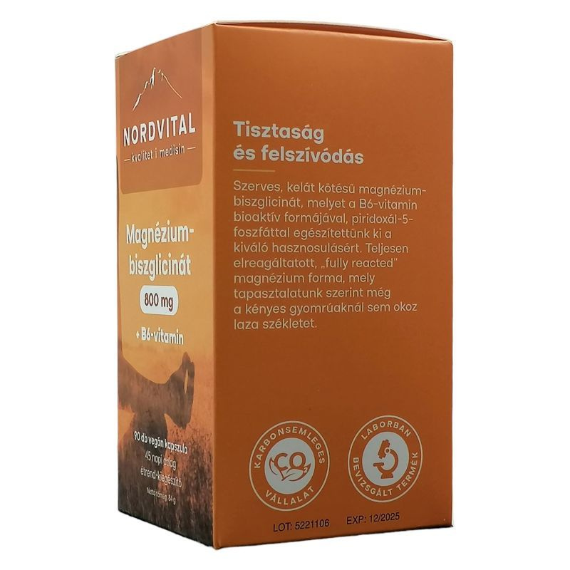 Szerves, kelát kötésű magnézium-biszglicinát, melyet a B6-vitamin bioaktív formájával, piridoxál-5-foszfáttal egészítettünk ki a kiváló hasznosulásért. Teljesen elreagáltatott, „fully reacted” magnézium forma, mely tapasztalatunk szerint még a kényes gyomrúaknál sem okoz laza székletet. A biszglicinát használata hazánkban igen népszerű, a Nordvital Magnézium-biszglicinát kiváló minőségű étrend-kiegészítő.