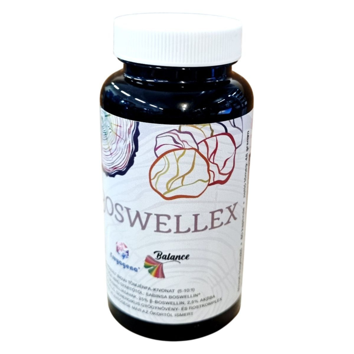 A BOSWELLEX egy indiai tömjénfa-kivonatot tartalmazó étrend-kiegészítő, amely a Sabinsa Boswellin gyártótól származik. A termék legalább 65% boswell savakat, 25% B-boswellint és 2,5% AKBA-t tartalmazhat, amelyek szinergikusan támogathatják az egészséget. A termék Magyarországon fejlesztett és gyártott, és a Nutribalance Kft. forgalmazza. Az étrend-kiegészítő nem helyettesíti a kiegyensúlyozott étrendet és az egészséges életmódot, és az ajánlott fogyasztási mennyiséget nem szabad túllépni. Tárolása száraz, hűvös helyen, közvetlen napfénytől védve ajánlott.