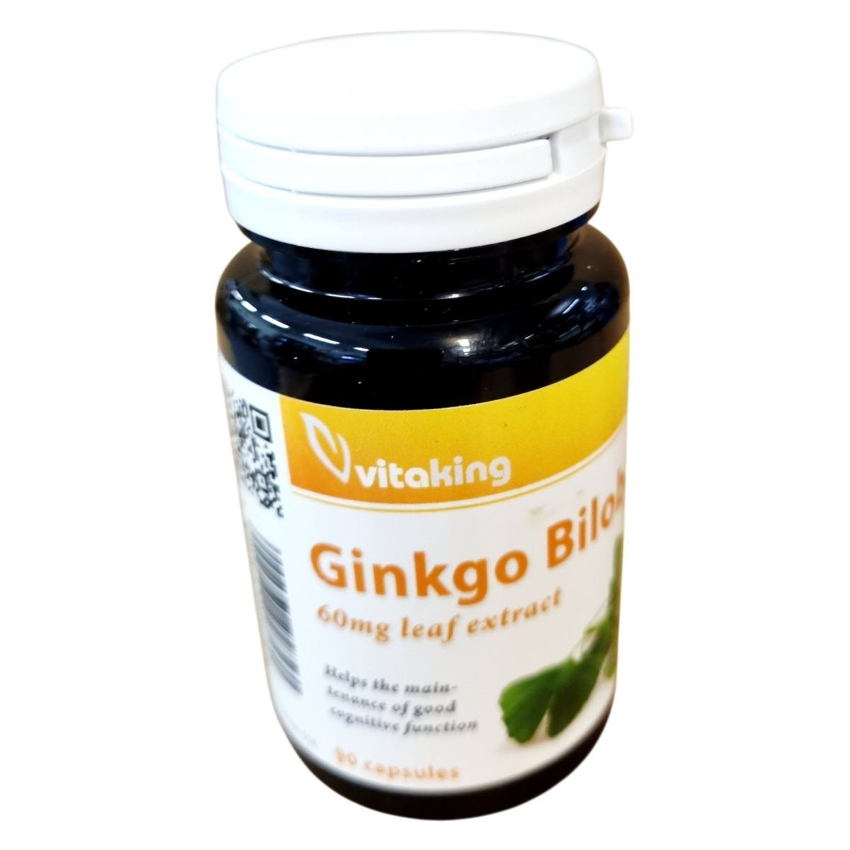 A Vitaking Ginkgo Biloba étrend-kiegészítő 90 kapszulás kiszerelésben kapható, és segíthet a kognitív funkciók fenntartásában. A termék 60 mg Ginkgo Biloba levél kivonatot tartalmaz kapszulánként, amely flavon glikozidokat és terpén laktónokat is tartalmazhat. A napi ajánlott mennyiség 1 kapszula étkezés közben, és fontos, hogy a napi ajánlott mennyiséget ne lépjük túl. A termék nem helyettesíti a vegyes étrendet és az egészséges életmódot. Tárolása száraz, hűvös helyen, gyermekektől elzárva javasolt. A termék fogyasztása nem ajánlott várandós és szoptató nőknek, gyermekeknek, valamint véralvadást gátló gyógyszert szedőknek és cukorbetegeknek orvosi konzultáció nélkül.