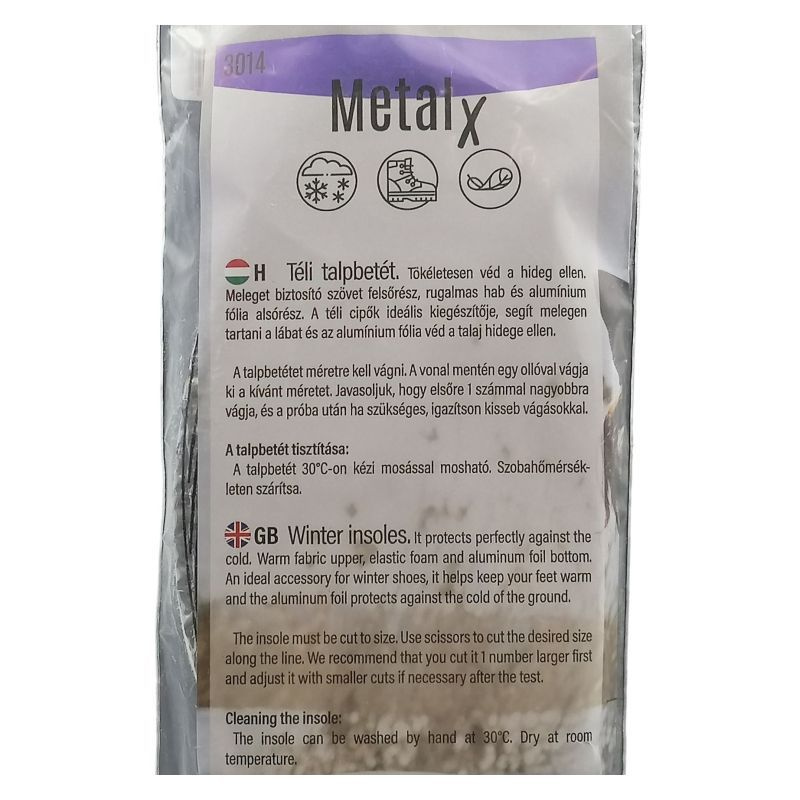 Meleget biztosító szövet, rugalmas hab, valamint alumínium fóliából készült. A talpbetét ideális téli kiegészítője a cipőnek, mivel az anyaga segít melegen tartani a lábat, miközben az alumínium fólia véd a talaj hidege ellen.