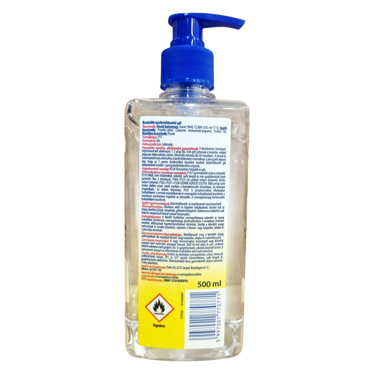A Brado Life kézfertőtlenítő gél bakteriális, gombás, vírusos és tuberkulózis elleni hatással rendelkezik, így sokoldalúan védi a kéz egészségét. Biocid hatóanyaga a magas, 72,90%-os etanol tartalom, amely gyors és hatékony fertőtlenítést tesz lehetővé. A formula géles állagú, felhasználóbarát, lakossági használatra szánt készítmény. Használata egyszerű: a gél hígítás nélkül közvetlenül a kézre kerül, ahol alapos bedörzsöléssel érhető el a fertőtlenítő hatás. A termék alkalmazása közben be kell tartani a biztonsági előírásokat, különösen tűzveszélyessége miatt, és ügyelni kell arra, hogy ne kerüljön szembe. A kiürült csomagolás és a maradék anyag megfelelő hulladékkezelése kiemelten fontos a környezet védelme érdekében. Szennyeződés esetén a kiömlött készítményt nedvszívó anyaggal kell felitatni, és az előírásoknak megfelelően kell ártalmatlanítani. Elektromos eszközök kezelése csak teljes száradás után ajánlott. A tárolás szabályai szerint hűvös és jól szellőző helyen, gyermekektől elzárva kell tartani a terméket.