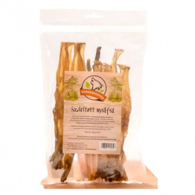 A szárított nyúlfül természetes állati fehérjeforrás, amely támogatja a kutya rágásigényét és fogtisztító hatású lehet.