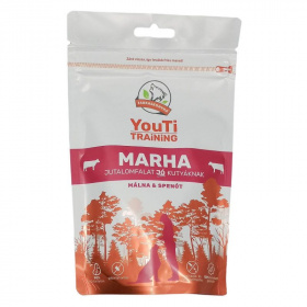 A training csapatmunka, ahol csak Ti számítotok: Te és Ő, a kutyád! A világ kizárva, csakis kettőtök tökéletes összhangja, szimbiózisa kell az összehangolt tréningekhez, ha valami igazán különleges teljesítményt szeretnétek együtt elérni. Határ a csillagos ég! A YOUTI jutalomfalat családot több mint 20 év trénerként szerzett tapasztalatainkat és kisállat-dietetikai szakmai tudásunkat ötvözve fejlesztettük a tökéletességig, 100%-ban természetes alapanyagokból.Ajánlott napi adag: Ne haladja meg a napi menü 20%-át.
