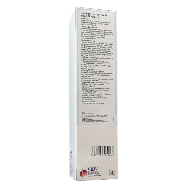 ALKALMAZÁSA:A Leniderm hab érzékeny, száraz bőrű kutyák és macskák ápolására szolgál.