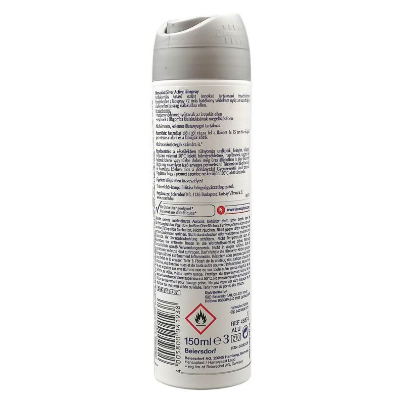 A Hansaplast Silver Active Lábspray 48 órás, biztonságos védelmet nyújt a szagok ellen.