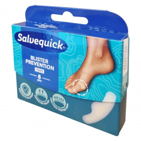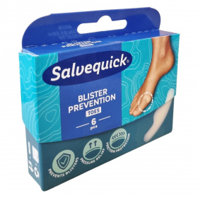 A Salvequick® Blister Prevention tapasz fejlett hidrokolloid anyagból készült, amely azonnali nyomáscsökkentést nyújt és felgyorsítja a vízhólyagok gyógyulását. Kifejezetten a lábujjak vízhólyagjainak megelőzésére és kezelésére tervezték, mérete 6 x 21 mm x 64 mm. A tapasz hatását úgy fejti ki, hogy mérsékli a nyomást és védelmet nyújt a súrlódás ellen. Használati utasítás szerint a tapaszt a vízhólyagon kell tartani mindaddig, amíg az magától le nem esik. A termék használata során különösen figyelni kell a sérülések állapotára, különösen ha a sebgyógyulás lelassult vagy problémás, mint például cukorbetegség esetén. Nem alkalmazható olyan sebekre, amelyek véreznek vagy fertőzöttek. A csomag 6 darab tapaszt tartalmaz, amelyek megkönnyítik a kezelést és a megelőzést.