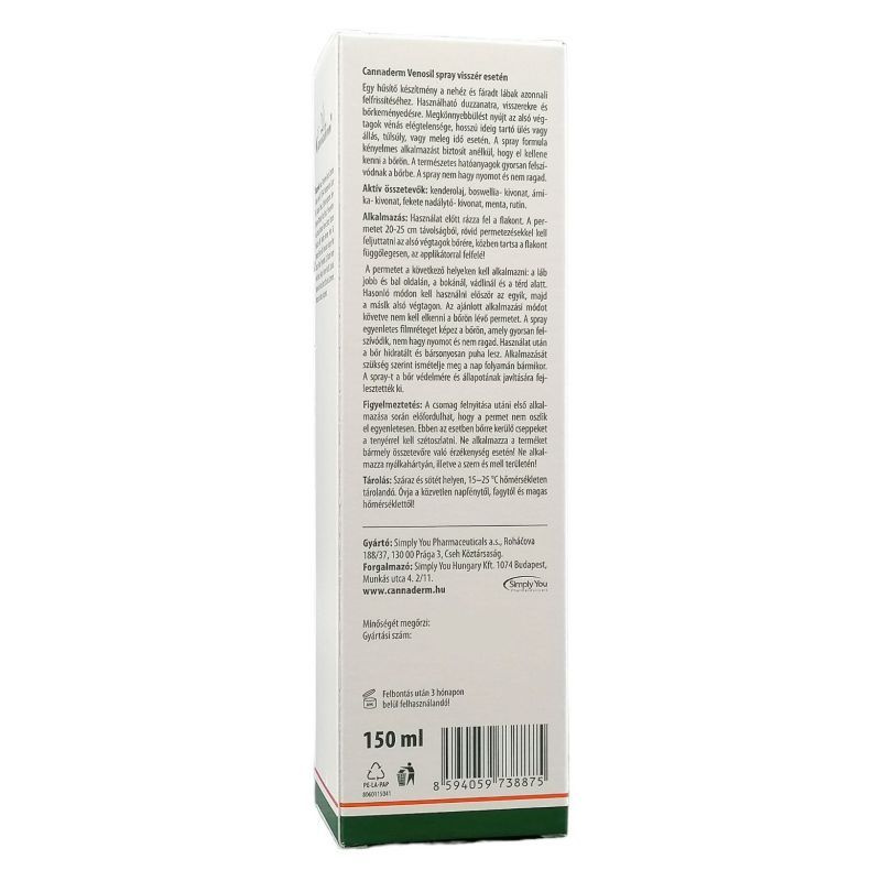 A Venosil visszér spray visszér esetén egy hűsítő készítmény mely felfrissítheti a nehéz és fáradt lábakat. Használható duzzanatra, visszerekre és bőrkeményedésre. Megkönnyebbülést nyújthat az alsó végtagok vénás elégtelensége, hosszú ideig tartó ülés vagy állás, túlsúly, vagy meleg idő esetén. A spray formula kényelmes felvitelt biztosít, anélkül, hogy szét kellene kenni a permetet. A természetes hatóanyagok gyorsan felszívódhatnak a bőrbe. A spray nem hagy nyomot, valamint nem ragad.