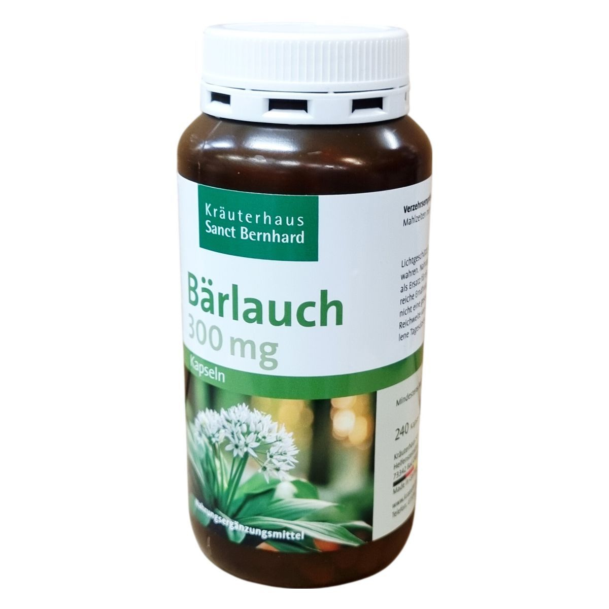 A termék medvehagymát tartalmazó étrend-kiegészítő kapszula, amely 300 mg hatóanyagot biztosít kapszulánként, összesen 240 kapszulás kiszerelésben. A kapszulák zselatinból készülnek, kalcium-karbonát töltőanyaggal. A termék Németországban készül, és olyan körülmények között kell tárolni, hogy fénytől védett, száraz helyen, 25 °C alatt maradjon. A terméket nem szabad étrend helyettesítőjeként használni, hanem a kiegyensúlyozott, változatos étrend és az egészséges életmód kiegészítőjeként javasolt alkalmazni.