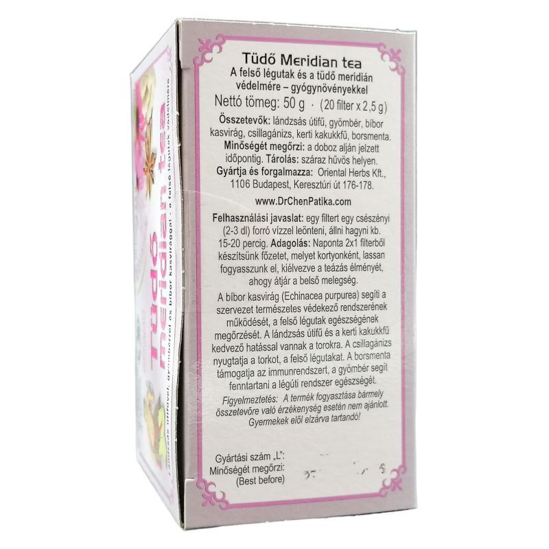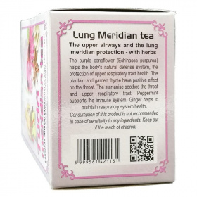 A lándzsás útifű és a kerti kakukkfű kedvező hatással vannak a torokra. A csillagánizs nyugtatja a torkot, a felső légutakat. A borsmenta támogatja az immunrendszert, a gyömbér segít fenntartani a légúti rendszer egészségét. A termék fogyasztása bármely összetevőre való érzékenység esetén nem ajánlott. Gyermekek elől elzárva tartandó! Nettó tömeg: 50 g (20 filter x 2,5 g).