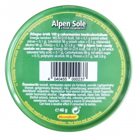 Az Alpen Sole torokcukorka természetes alpesi sós forrásvízzel és gyógynövénykivonatokkal készül, melyek a torok nyugalmának támogatására szolgálhatnak.