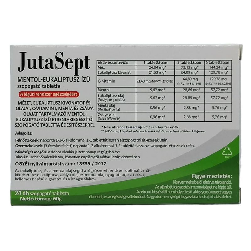 Kiszerelés: 24 db szopogató tabletta.