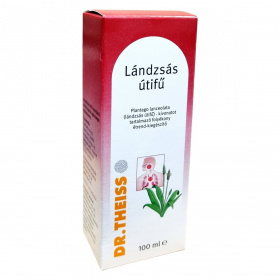 A Dr. Theiss Lándzsás útifű étrend-kiegészítő egy folyékony készítmény, amely lándzsás útifű-kivonatot tartalmaz. A termék célja, hogy támogassa a felső légutak egészséges működését. Az étrend-kiegészítő alkoholt nem tartalmaz, és 3 éves kor felettiek számára ajánlott. A termék szacharóz szirupot, invertcukor szirupot, vizet, lándzsás útifű-kivonatot és kálium-szorbátot tartalmaz. Fontos, hogy a készítményt kisgyermekek elől elzárva tartsuk, és ne lépjük túl az ajánlott napi fogyasztási mennyiséget. A termék nem helyettesíti a kiegyensúlyozott étrendet és az egészséges életmódot. Cukorbetegek számára nem ajánlott. A terméket legfeljebb 25°C-on kell tárolni, és a minőségét a doboz alján jelzett időpontig őrzi meg.