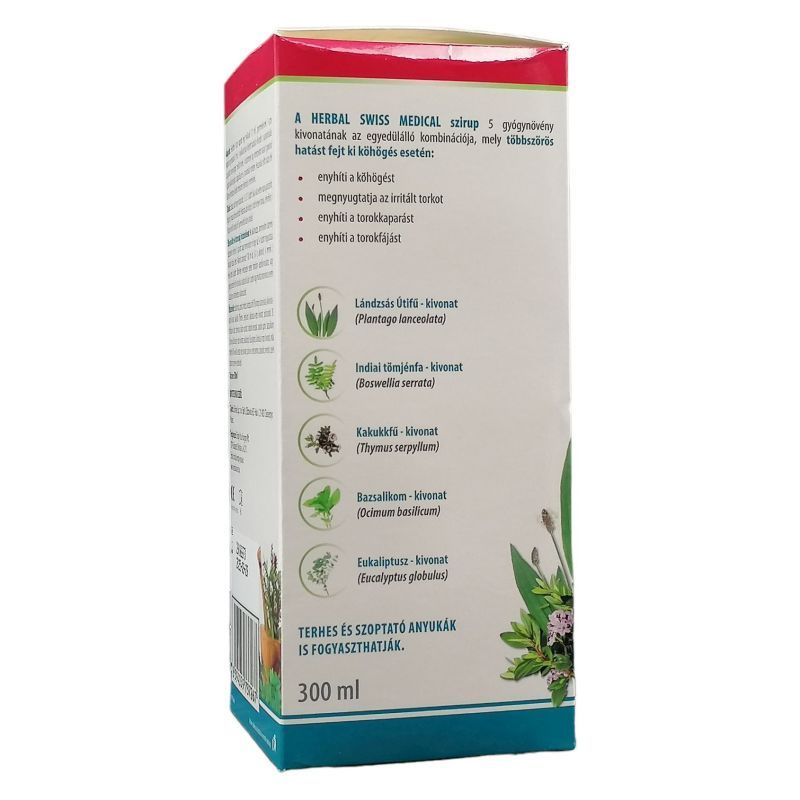 A szirup 5 gyógynövénynek az egyedülálló kombinációja: Lándzsás Útifű - kivonat (Plantago lanceolata), Indiai Tömjénfa - kivonat (Boswellia serrata), Kakukkfű - kivonat (Thymus serpyllum), Bazsalikom - kivonat (Ocimum basilicum), Eukaliptusz - kivonat (Eucalyptus globulus).