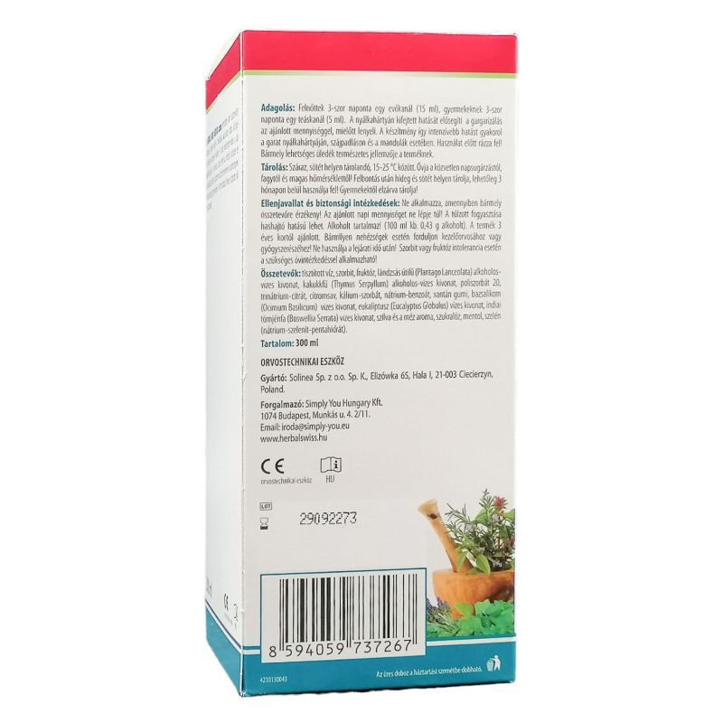 Adagolás: felnőttek 3-szor naponta egy evőkanál (15 ml), gyermekeknek 3-szor naponta egy teáskanál (5 ml). A nyálkahártyán kifejtett hatását elősegíti a gargarizálás az ajánlott mennyiséggel, mielőtt lenyeli. A készítmény így intenzívebb hatást gyakorol a garat nyálkahártyáján, szájpadláson és a mandulák esetében. Használat előtt rázza fel! Bármely lehetséges üledék természetes jellemzője a terméknek.