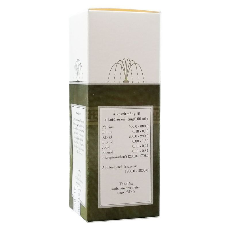 Mi a hatóanyag? Természetes alkalikus gyógyvíz, mely hatását illetően dominálóan nátrium-karbonátot és konyhasót tartalmaz. A Salvus gyógyvízpermet főbb oldott elemei [mg/10ml]: Nátrium 500,00-800,00 / Lítium 0,18-0,30 /Klorid 200,00-290,00 / Bromid 0,80-1,80 / Jodid 0,11-0,24/ Flourid 0,11-0,34 / Hidrogén-karbonát 1200,00-1700,00 / Alkotóelemek összesen: 1900,00-2800,00.