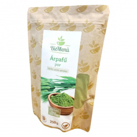 A BioMenü BIO Árpafű por egy 250 grammos kiszerelésű, 100% tisztaságú, organikus és nyers árpafűből készült étrend-kiegészítő. Az árpafű gazdag rostokban és fehérjében, így hozzájárulhat az egészséges táplálkozáshoz. A termék nyomokban tartalmazhat zellert, mustármagot, vadrepceét és glutént. Az ajánlott napi adag 3-5 gramm, amelyet folyadékba keverve lehet fogyasztani. A termék táplálkozási tulajdonságai változhatnak a környezeti feltételektől függően. Tárolása száraz, hűvös, fényvédett helyen javasolt. Az árpafű por az Európai Unióból származik, és a Caleido IT-Outsource Kft. forgalmazza.