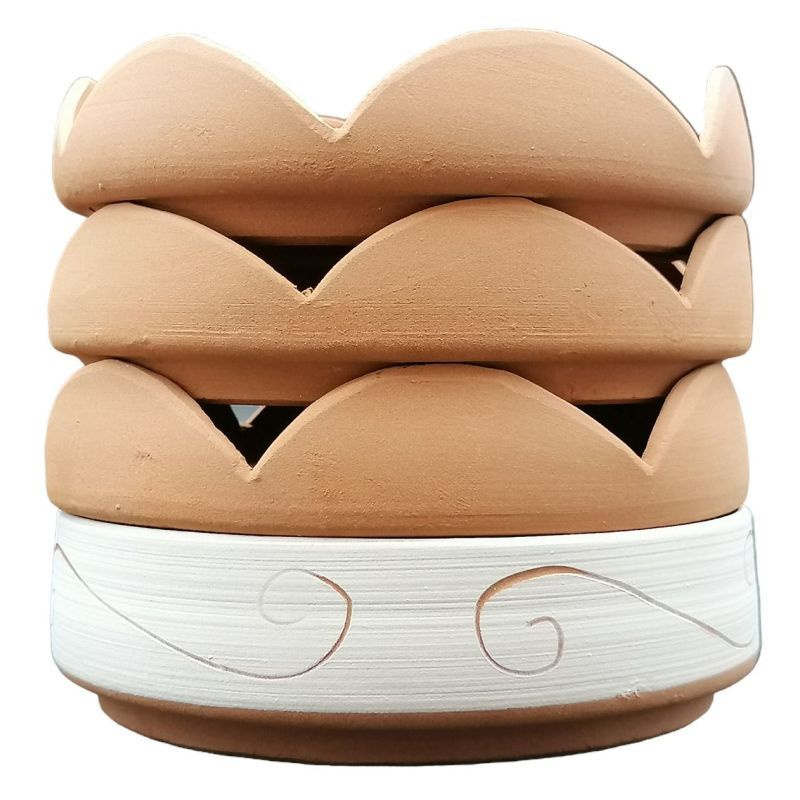 Anyaga: kerámia. A 3 db lyukacsos tál lehetővé teszi, hogy egyszerre több féle magot is csíráztathassunk. A magvakat könnyű elöblíteni: a tálcákat szétszedve, csak egyszerűen a csap alá kell rakni őket. Az alsó tál jól használható a magvak beáztatásához és a lecsepegő víz összegyűjtéséhez.