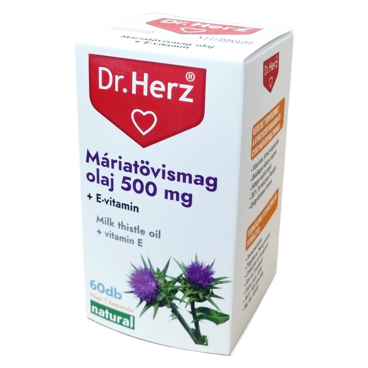A Dr.Herz® Máriatövismag olaj 500 mg + E-vitamin kapszula egy olyan természetes alapanyagokból készült étrend-kiegészítő, amely könnyen adagolható lágyzselatin kapszulák formájában elérhető kiszerelésben. A terméket a gyógyszertárakban és gyógynövényboltokban is megtalálhatja, ahol a márka termékpalettáján vitaminok, étrend-kiegészítők, belsőleges oldatos cseppek, hidegen sajtolt olajok, 100% természetes illóolajok és gyógynövényes krémek is megtalálhatók. A termék fogyasztásával a felhasználók támogathatják az immunerősítést, az anyagcsere folyamatokat, valamint hozzájárulhatnak a szív- és érrendszer, a csontok, porcok, ízületek egészségéhez. A kapszula használata egyszerű, napi egy adagolás elegendő, amelyet főétkezés előtt ajánlott bevenni. Fontos, hogy az ajánlott adagot ne lépje túl, és a kiegészítő nem helyettesíti a kiegyensúlyozott étrendet és az egészséges életmódot.