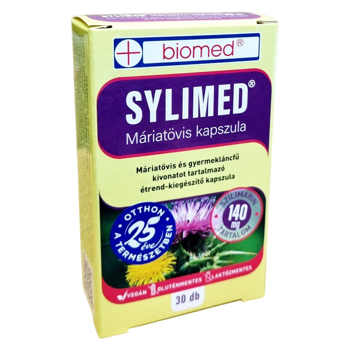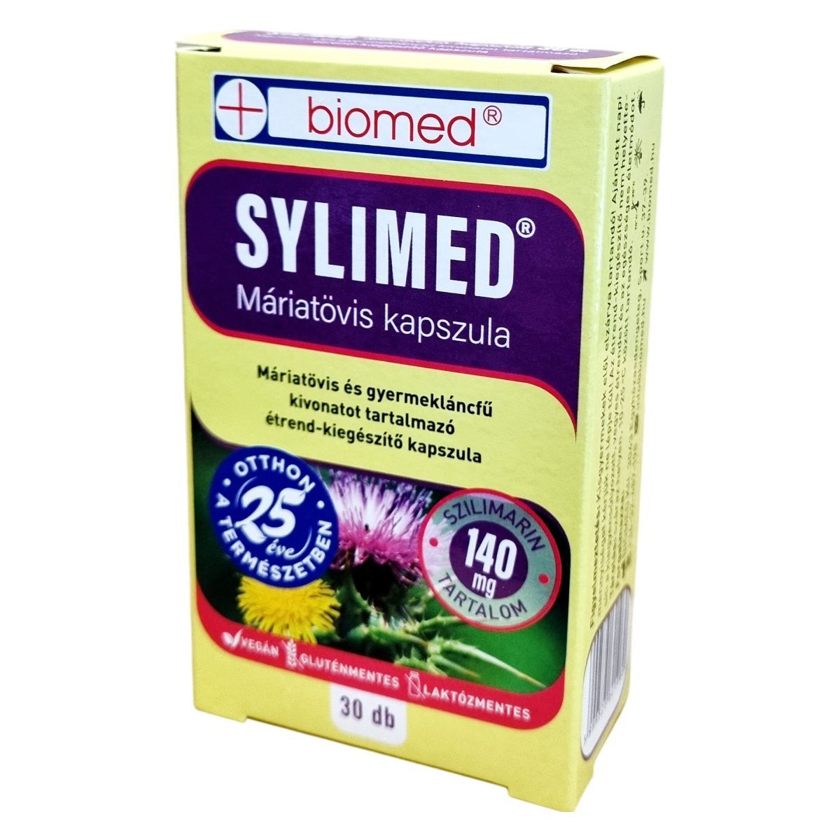 A biomed® SYLIMED® Máriatövis kapszula egy vegán, glutén- és laktózmentes étrend-kiegészítő, amely máriatövis és gyermekláncfű kivonatot tartalmaz. A termék célja, hogy támogassa a máj és az epe egészséges működését, valamint elősegítse az emésztőrendszer megfelelő működését. A C-vitamin tartalma hozzájárulhat a normál energiatermelő anyagcsere-folyamatokhoz. A kapszulák 30 darabos kiszerelésben kaphatók, és napi egy kapszula fogyasztása javasolt, lehetőleg főétkezés után, bő folyadékkal. A terméket száraz helyen, 10-25 °C között kell tárolni, és fontos, hogy kisgyermekek elől elzárva tartsuk.