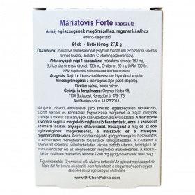 Napjaink rohanó életvitelével járó stressz, egészségtelen táplálkozás, túlzott alkohol- és kemikáliafogyasztás megterheli a májat, amelynek szerepe a toxikus salakanyagok szervezetből való kiválasztása. A máriatövis kivonata segítheti a megfelelő májfunkció fenntartását, ezzel elősegítve a toxikus anyagok eltávolítását. Támogathatja a máj és az epe egészségének megőrzését, valamint a májszövet és a májsejtek regenerálódását. A schizandra gyógynövény segítheti a természetes méregtelenítő folyamatokat. A C-vitamin vízben oldódó vitamin, amely hozzájárulhat az immunrendszer és az idegrendszer megfelelő működéséhez. A kapszulában található máriatövis kivonat 7200 mg gyógynövénynek felel meg. A termék GMP minősítéssel rendelkezik, mely biztosítja a helyes gyártási gyakorlatot, és több mint 30 éve jelen van a fogyasztók bizalmában.