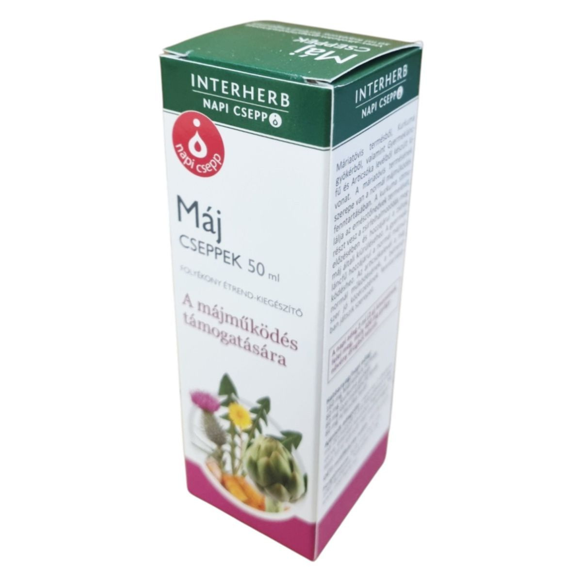 Az INTERHERB NAPI CSEPP Máj CSEPPEK egy vizes-alkoholos gyógynövénykivonat, amely a májműködés támogatására készült. A termék máriatövis, kurkuma, gyermekláncfű és articsóka kivonatot tartalmaz, amelyek hozzájárulhatnak a normál májműködés fenntartásához és az emésztés támogatásához. Az alkoholtartalom 36 V/V %, ezért alkohollal kölcsönhatásba lépő gyógyszerekkel nem szedhető, és nem ajánlott alkoholbetegek számára. A termék fogyasztása várandósság és szoptatás alatt, valamint gyermekeknek nem javasolt. A készítmény nem helyettesíti a kiegyensúlyozott vegyes étrendet és az egészséges életmódot.