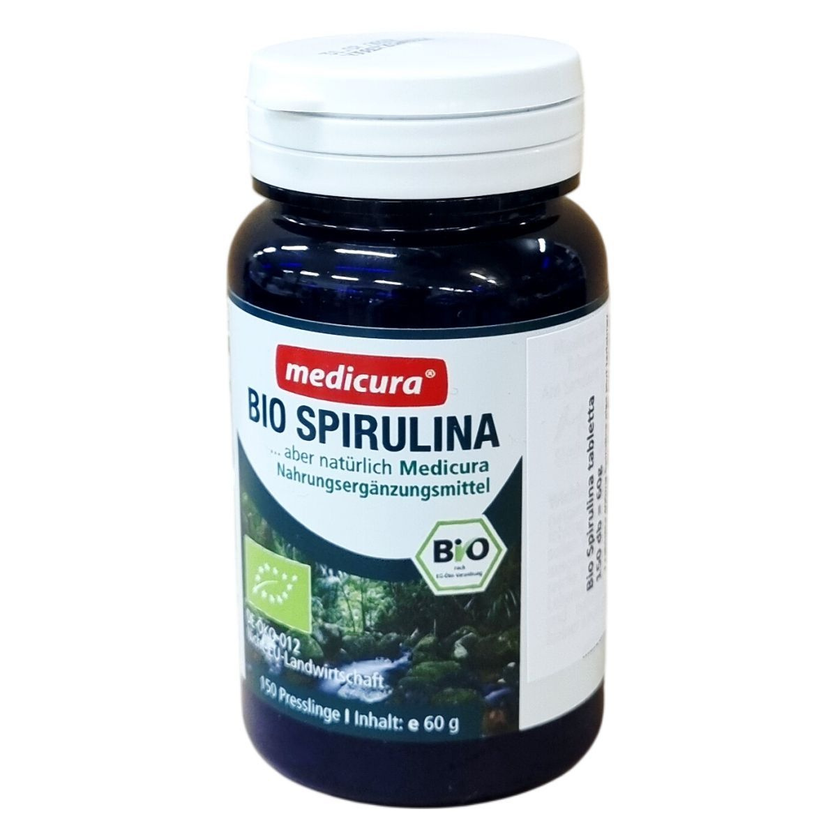 A Medicura Bio Spirulina készítmény spirulina platensis mikroalga porból készül, mely organikus termesztésből származik. Egy tabletta 400 mg spirulina port tartalmaz, és a csomagolás 150 tablettát foglal magában, összesen 60 gramm mennyiségben. Az energia- és tápérték adatok részletesen ismertetik a tápanyagok mennyiségét 100 grammonként és az adagolás szerinti 6 grammra vetítve. A termék alkalmazása felnőttek számára ajánlott, napi háromszori, egyenként öt tabletta bő folyadékkal történő bevételével, előnyösen főétkezések előtt. A tárolás javasolt körülményei között szerepel a hűvös, száraz hely fenntartása, 25 °C alatti hőmérséklettel és fényvédett állapot biztosításával. A termék gyermekektől elzárva tartandó, valamint az ajánlott adagolás túllépése kerülendő. A spirulina alga ismert összetevői között a fehérje és a természetes tápanyagok magas aránya emelendő ki. A csomagoláson feltüntetett engedélyek és tanúsítványok biztosítják a termék bio minőségét és szabályozott előállítását.