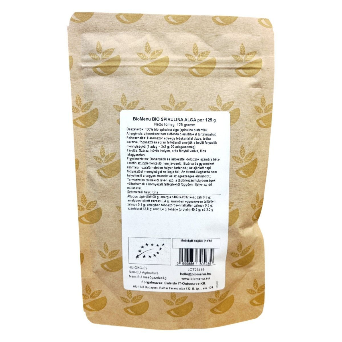 A BioMenü Spirulina algapor egy 100% bio, vegán és raw étrend-kiegészítő, amely spirulina algából készül. A termék Kínából származik, és a spirulina alga gazdag fehérjében és rostban, ami hozzájárulhat a kiegyensúlyozott étrendhez. Az algapor természetes szulfitokat tartalmazhat, ezért allergiások számára fontos az óvatosság. A termék fogyasztása során javasolt a folyadékbevitel növelése. A spirulina algapor táplálkozási tulajdonságai változhatnak a környezeti feltételektől függően, ezért fontos a megfelelő tárolás. A termék HU-ÖKO-02 tanúsítvánnyal rendelkezik, és a Caleido IT-Outsource Kft. forgalmazza.