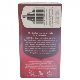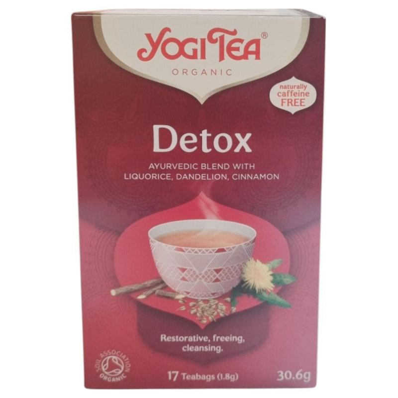 A Yogi Tea Detox egy koffeinmentes, bio minősítésű ayurvédikus gyógynövény- és fűszerkeverék, amely édesgyökérrel, gyermekláncfűvel és fahéjjal támogatja a szervezet természetes méregtelenítését.