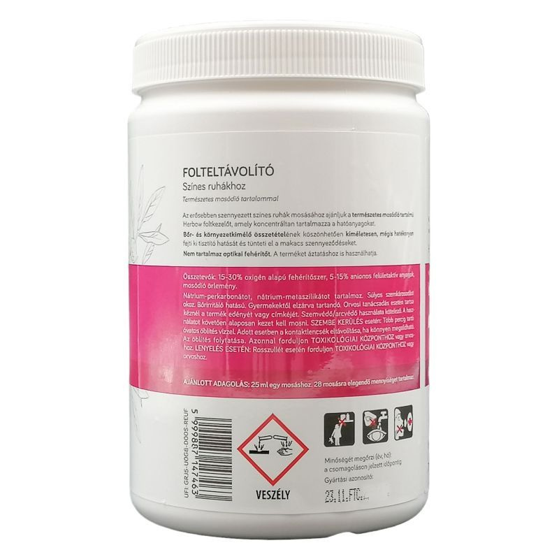 Az erősebben szennyezett textíliákhoz és a foltok eltávolítására ajánljuk. Bőr- és környezetkímélő összetételének és aktív oxigénes koncentrált hatóanyag tartalmának köszönhetően nagyobb mennyiségben adagolva sem károsítja a textíliát, védi a színeket a fakulástól. Nem tartalmaz optikai fehérítőt. 30-40-60 Celsius-fokon gépi és kézi mosáshoz is felhasználható.