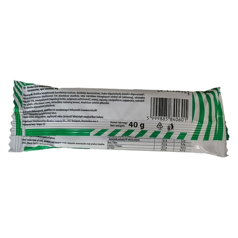 Miért különleges az AbsoBAR ZERO? Vegán, glutén és laktózmentes: a speciális étrenddel rendelkezők is fogyaszthatják. Kiváló minőségű alapanyagokból készül: rizs- és borsóprotein felhasználásával. Teljes értékű fehérjeforrás: komplettált fehérjéből (tartalmaz minden aminosavat, amelyek a a szervezet számára nélkülözhetetlenek). Tartósítószer mentes: felesleges adalékagyagoktól mentes szelet. Minimum 27% vegán proteint tartalmaz: szuper harapnivaló, ha edzés előtt/alatt/után rád tör az éhség, vagy csak ennél valami finomat. Alacsony a cukortartalma: egy szelet kevesebb, mint 2 g cukrot tartalmaz. Rostban gazdag: a megfelelő mennyiségű rostbevitel fontos a jól működő emésztéshez, és teltségérzetet is biztosít.