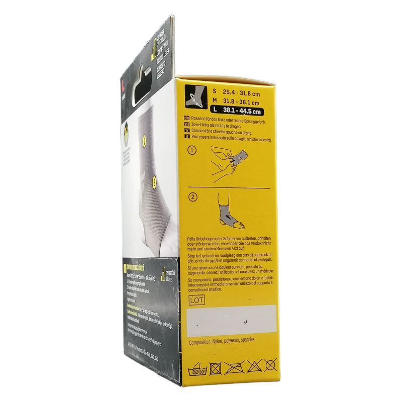 L (38,0-44,5 cm). Kényelmesen húzza fel, vegye fel a cipőjét és már mehet is! Viselje egész nap, vagy amikor a leginkább szüksége van rá. Speciális jellemzők: Puha kötés és sarok nyílásnál a kényelemért, diszkrét, ruha alatt viselhető. Alkalmazható: bokarándulás, -húzódás, ízületi gyulladás, bokaduzzanat esetén. Terméktípus: Zárt. Termékjellemzők és termékelőnyök: Letisztult, egyszerű design követi a boka formáját, ami optimális illeszkedést és ízületi védelmet nyújt. Légáteresztő, duplán rugalmas, erős kötött anyag az optimális kényelemért. A kényelmes panelek csökkentik a gyűrődést. Egyszerűen és diszkréten illeszkedik a cipőbe. Jobb és bal bokán egyaránt alkalmazható.