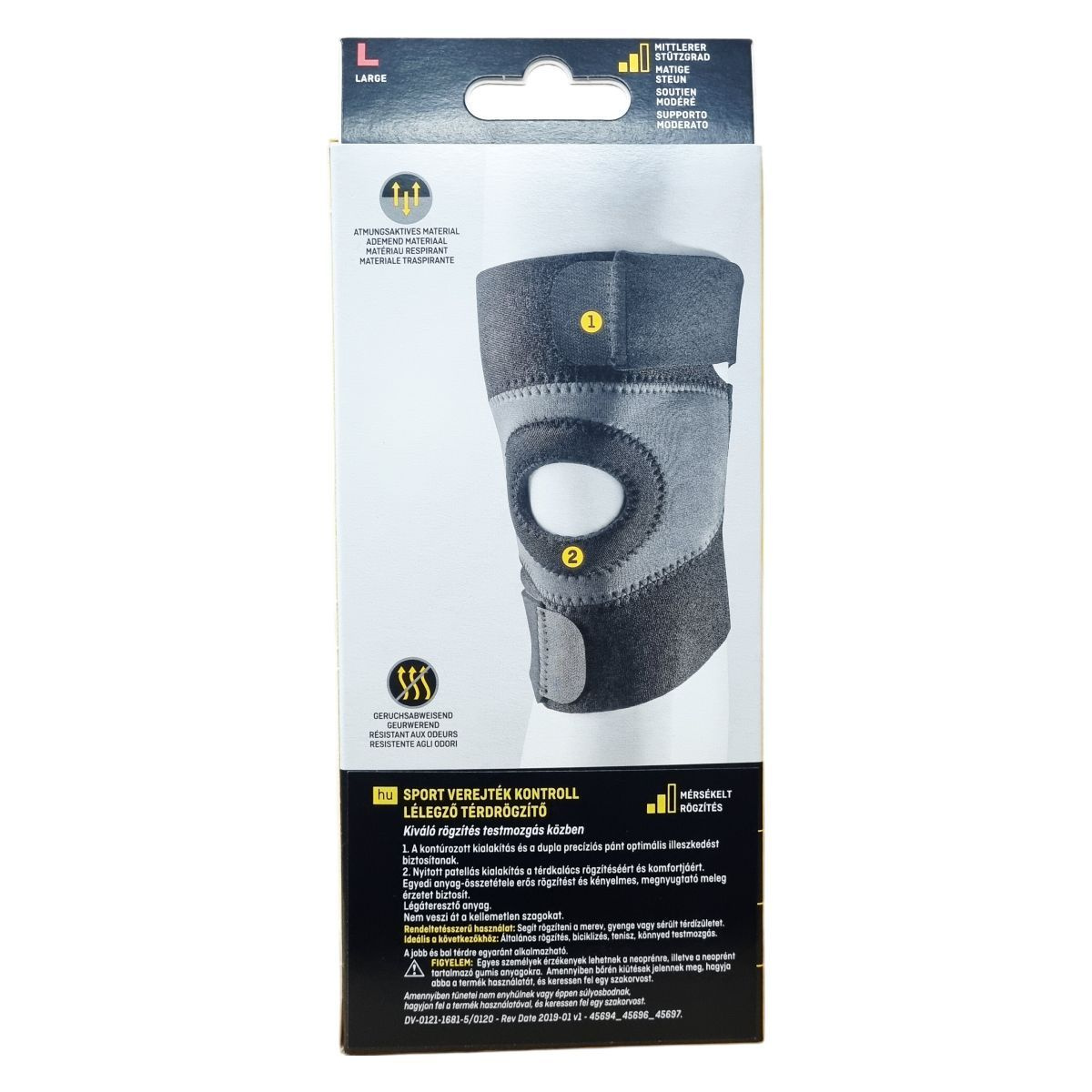 A térdrögzítő támogatást nyújt merev, gyenge vagy sérült térdeknek. Ideális általános rögzítéshez, kerékpározáshoz, teniszezéshez és egyéb sporttevékenységekhez. Használható mind a jobb, mind a bal térden.
