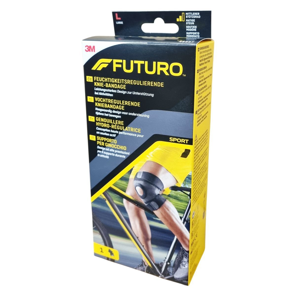 A FUTURO™ közepes tartású térdrögzítő innovatív, sportoláshoz tervezett eszköz, amely kiváló támaszt nyújt a térdízületnek. A térdrögzítő kontúrozott kialakítása és a dupla precíziós pántok optimális illeszkedést biztosítanak. Nyitott patellás kialakítása növeli a kényelmet és stabilizálja a térdkalácsot mozgás közben. Az anyag légáteresztő, így segít szabályozni a nedvességet, és ellenáll a kellemetlen szagoknak, miközben megnyugtató meleg érzetet is biztosít. A termék univerzálisan használható jobb és bal térden, és ajánlott többféle sporttevékenységhez, például kerékpározáshoz, teniszezéshez és általános edzéshez. Használatakor ügyelni kell az esetleges neoprén-érzékenységre, és bőrreakció esetén a használatot abba kell hagyni és orvosi segítséget kérni. Mosása 30°C-on történik, kímélő módon, tisztítása nem lehetséges vegytisztítással, nem vasalható, nem szárítható gépben, és nem fehéríthető.