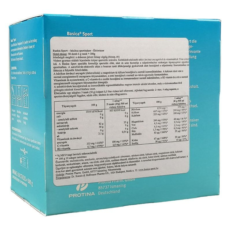 A Basica Sport speciális formulája sportolás előtt, alatt és után biztosítja a teljesítményhez szükséges tápanyagokat egyetlen sportitalban. A szénhidrát-elektrolit oldat a hosszan tartó állóképességi gyakorlatok alatt hozzájárul a teljesítmény fenntartásához és fokozza a folyadék felszívódást. Fogyasztása optimális, nagyon gyors hidratációt eredményez.