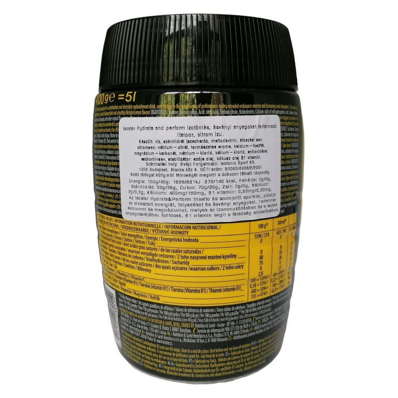 Az Isostar izotóniás sportitalpor ásványi anyagokat, egyszerű és összetett szénhidrátokat és B1-vitamint tartalmaz frissítő citromos ízben.