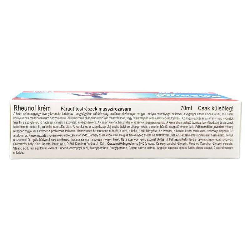 A krém számos gyógynövényt tartalmaz, mint az angyalgyökér, sáfrány virág, a csalán és a közönséges magyal kivonatok, melyek hatóanyagai az izmok, a végtagok frissítésére, a térd, a boka, a váll, és a derék környékének masszírozására használható. Alkalmazható akár akupresszúrás masszázshoz, vagy fizikoterápiás kezelések kiegészítőjeként.