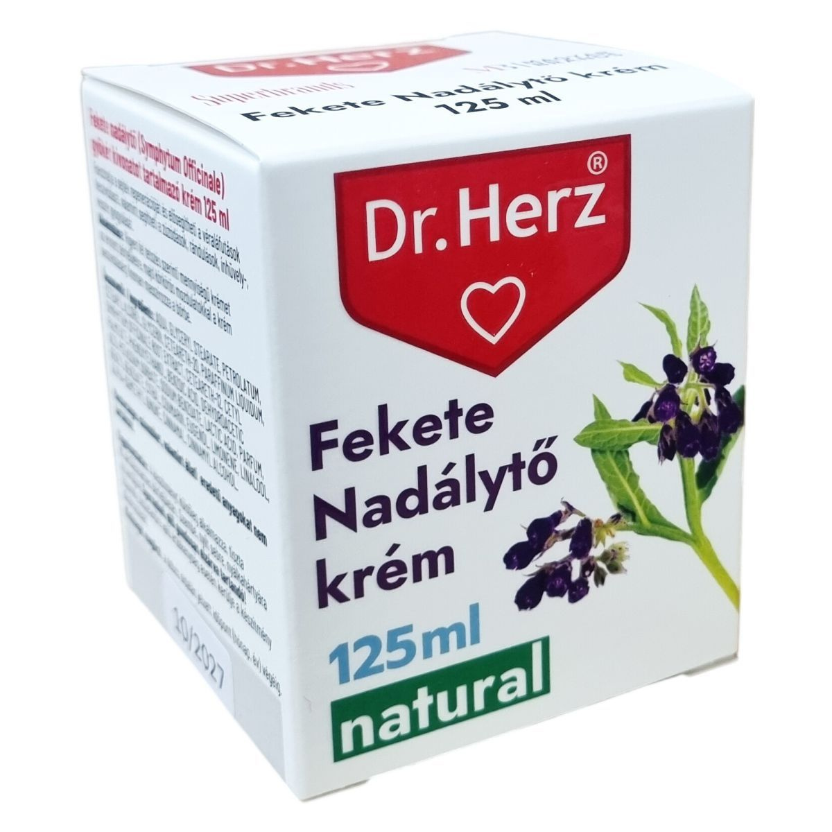 A Dr.Herz fekete nadálytő krém természetes összetevőkkel készült, mesterséges színezékektől és állati eredetű alapanyagoktól mentes készítmény. Német minőségben gyártott termék, mely hozzájárulhat a sejtek gyorsabb regenerálódásához, segíthet a véraláfutások felszívódásában, valamint támogatja a zúzódások, rándulások, ínhüvely-gyulladások és visszerek gyógyulását. Különösen ajánlott sérült vagy fájdalmas bőrfelületek ápolására. A krém használata során a bőrbe masszírozott hatóanyagok segítik a gyógyulási folyamatokat, miközben nem tartalmaz mesterséges színezékeket vagy állati eredetű anyagokat, így megfelel a természetes kozmetikumok iránti igényeknek. A termék elérhető gyógyszertárakban és gyógynövényboltokban, ahol más természetes hatóanyagú termékek, illóolajok, vitaminok és étrend-kiegészítők is kaphatók.
