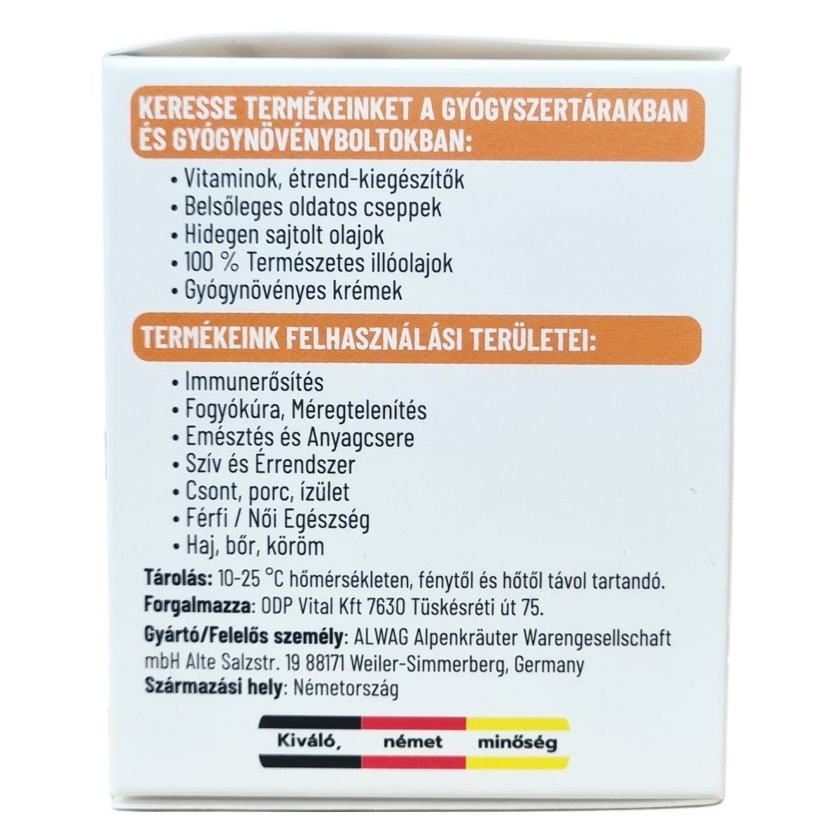 Tárolja 10–25 °C között, fénytől és hőtől védve.
