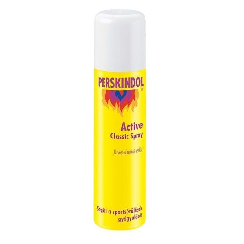 A Perskindol Active Classic Spray mentolt és illóolajokat tartalmazó, hűsítő spray, melynek alkalmazásakor kettős hatás léphet fel: hűsítő és melegítő hatás. Mentolt és illóolajokat (amerikai télizöld, citrom-, édes narancs-, bergamott-, erdei fenyőtű-, levendula-, rozmaringolaj) tartalmaz, így azonnali hűsítő és nyugtató hatást biztosíthat, melyet kellemes melegségérzet követhet. Serkentheti a vérkeringést, elősegítheti az izmok ellazulását, mely hatás a bőrbe masszírozással fokozható. Természetes összetevői révén jól tolerálható, parabénmentes termék!