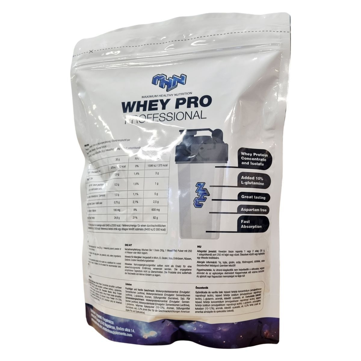 A MHN WHEY PRO PROFESSIONAL egy professzionális minőségű tejfehérje por, amely koncentrátum és izolátum formában tartalmazza a fehérjét, kiegészítve 10% L-glutaminnal. Az aszpartámmentes termék alacsony zsírtartalmú és hozzáadott cukrot nem tartalmaz. Az ital gyorsan oldódik, így kényelmesen készíthető el vízzel vagy tejjel. A termék fogyasztása étkezések között, illetve egy étkezés kiváltására is javasolt lehet. A készítmény allergén feldolgozó üzemekben készült, ahol tej, tojás, glutén, szója, földimogyoró, diófélék és zeller is jelen van, ezért az allergiások körültekintően használják. A csomag 33 adag port tartalmaz, 30 g-os adagolással.